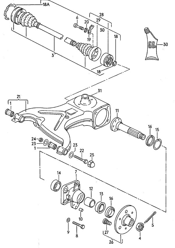 CV Axle, Rear Trailing Arm, and Hub