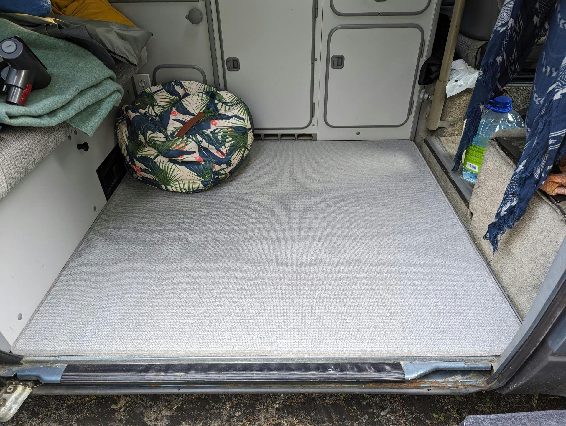 Passenger area carpet mat for Westfalia full camper with galley and rear bench seat.