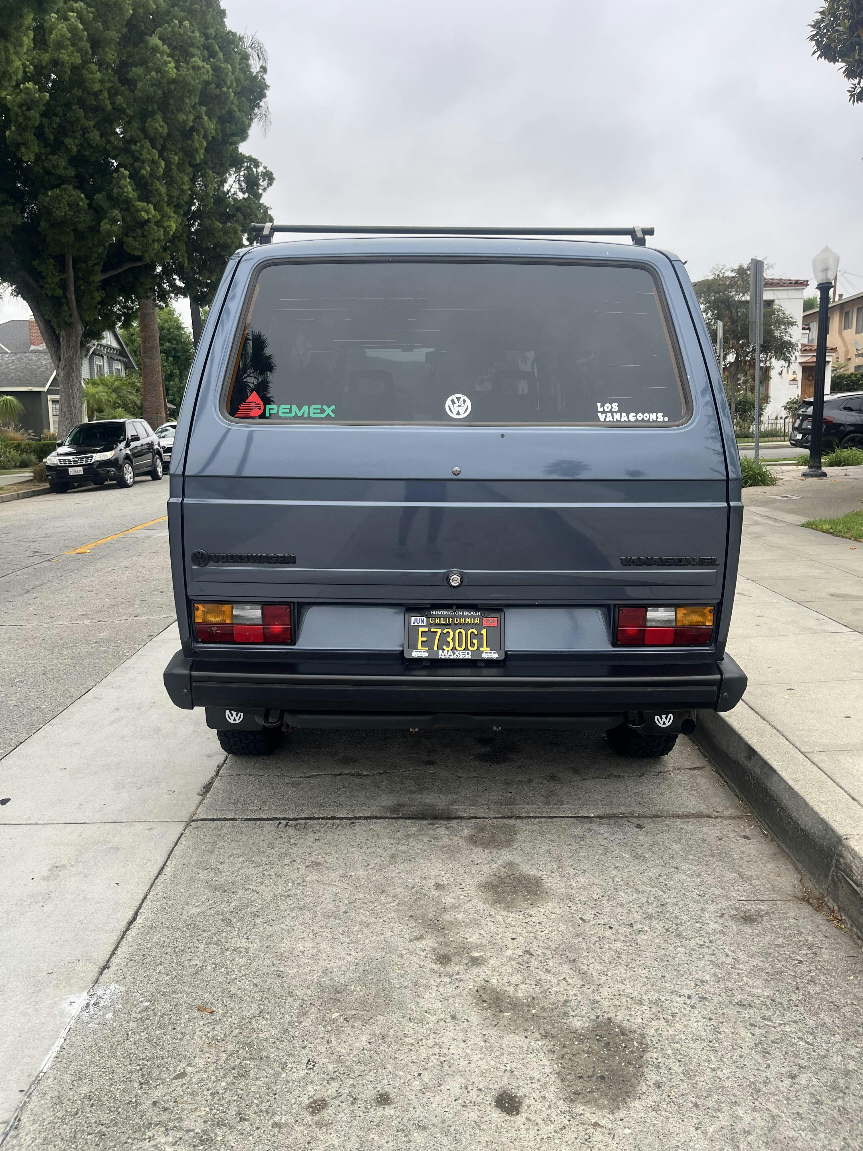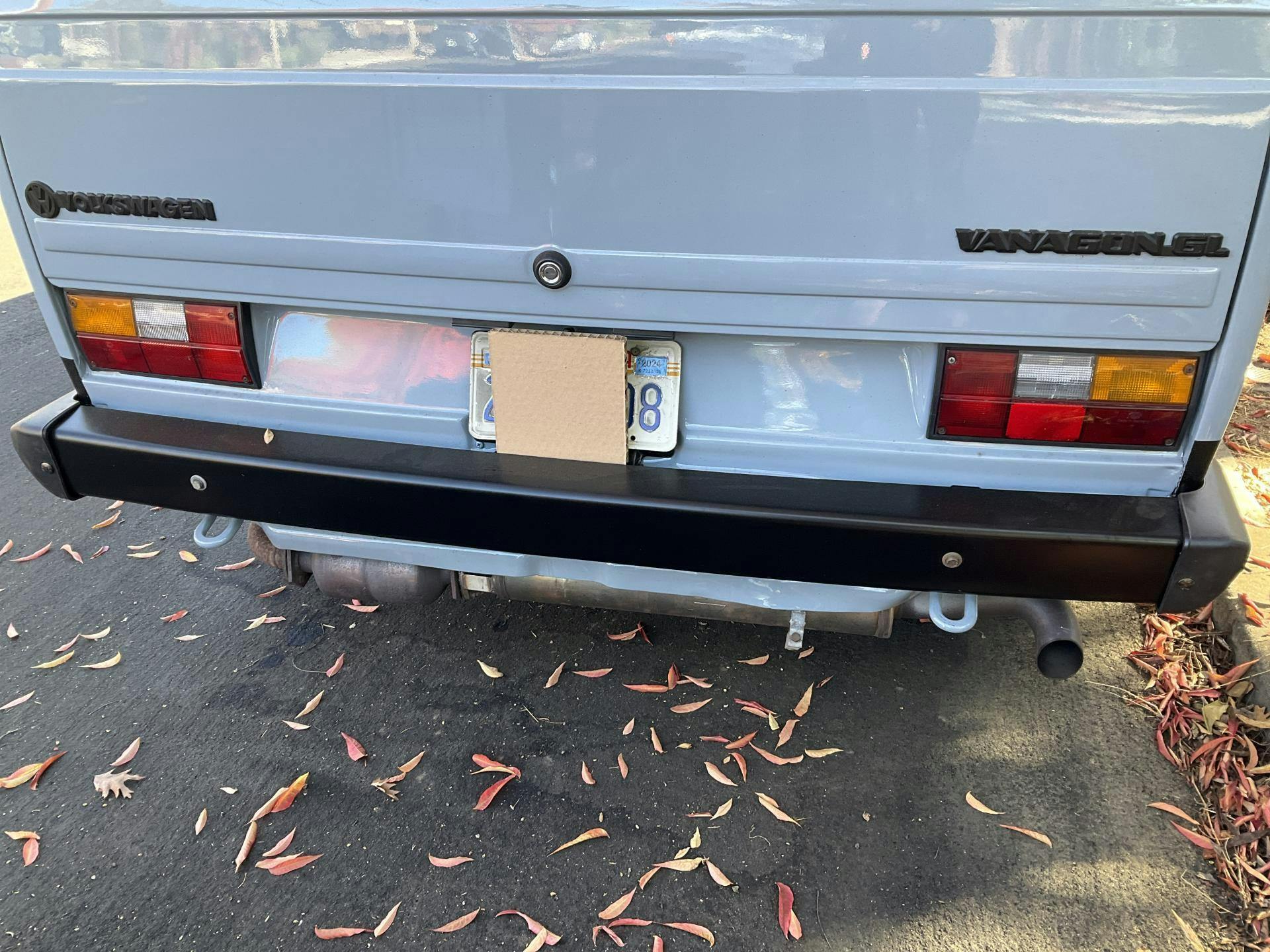 This "deluxe" original-style rear bumper was originally fitted to 1980-87 Vanagons, but can be installed on any year Vanagon, right up to 1991. This bumper does not have holes for the rear rubber pad strip. These "deluxe" bumpers are made of thicker steel and a much higher quality black primer finish* than the "standard" bumpers we have been offering.