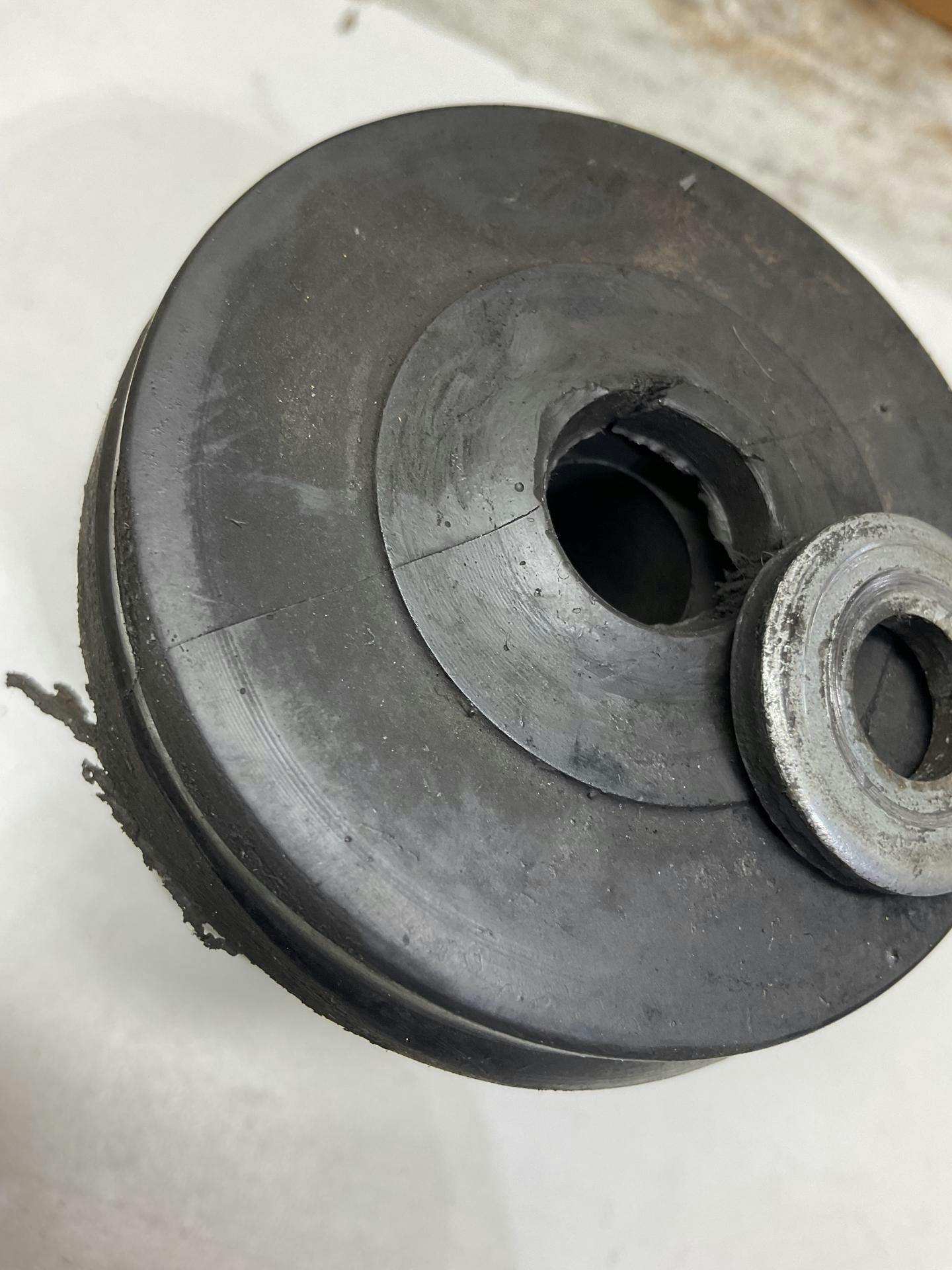 The rubber bump stops on your Vanagon are there to cushion the front suspension when you hit a bump in the road big enough to use up the available wheel travel. Even the tamest Vanagon drivers give their front bump stops a fair amount of abuse, and the rowdier among us subject them to brutal loading. Over the years, the rubber material of which the original bump stops are made deteriorates and requires replacement. We set out to reproduce these bump stops—albeit in a slightly smarter way.