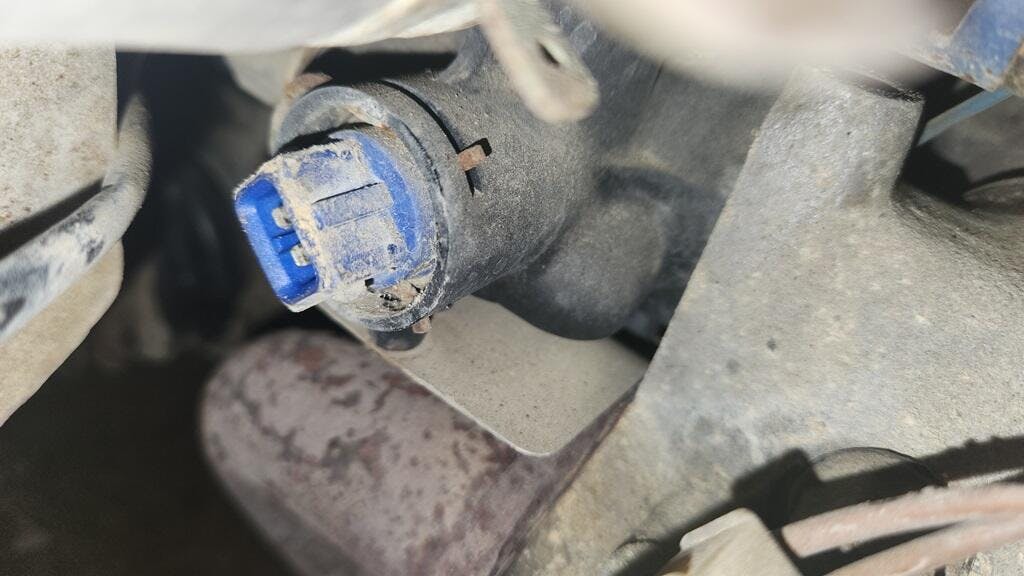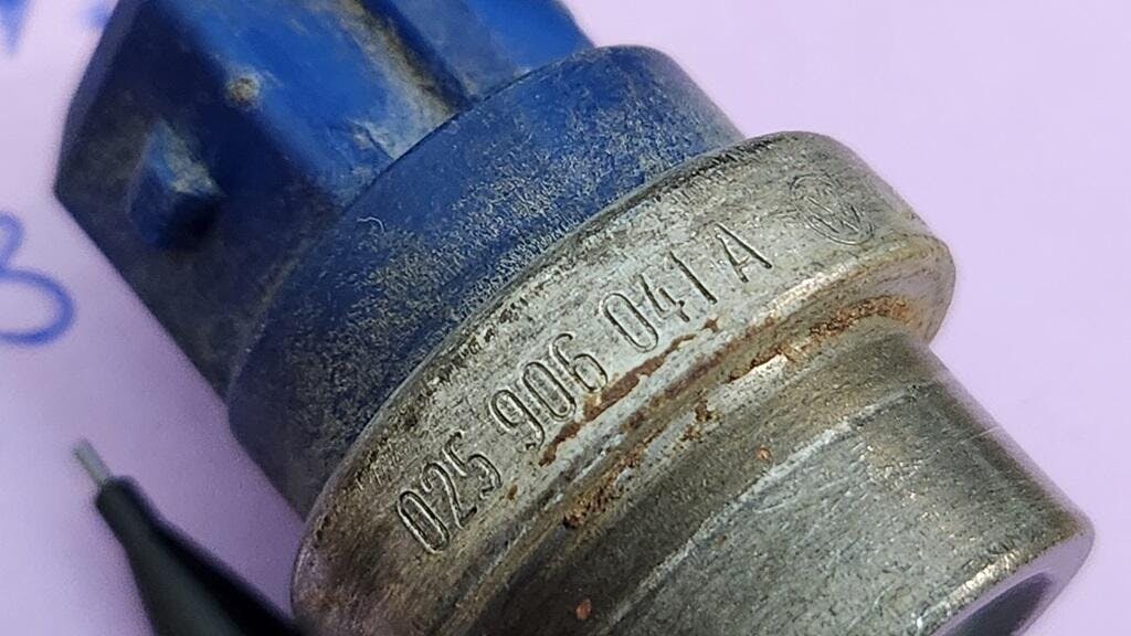 Blue temperature sensor for Digifant fuel injection. This sensor fits all 2WD Vanagon with 2.1 liter engines. It is located in the factory plastic lower thermostat housing.