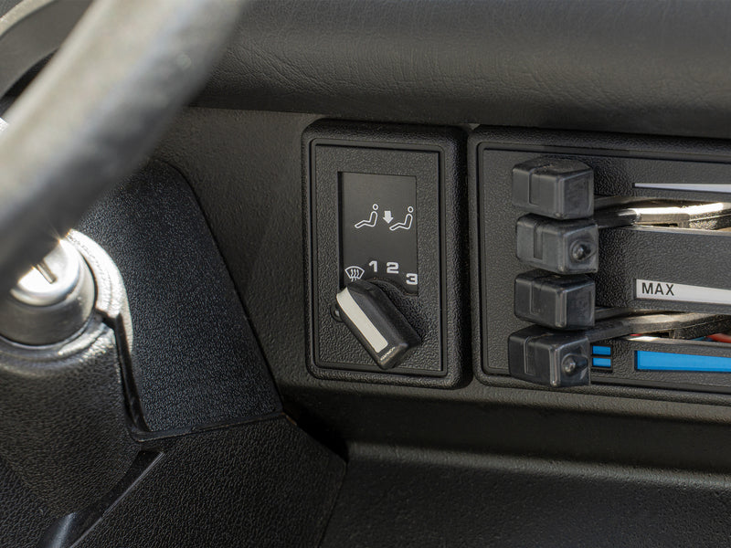 If you’ve removed the rear heater located under your bench seat, you may be left with an unused switch opening on your dashboard. This 3D-printed nylon cover plate is a clean, durable solution to fill that gap. Use it as a simple blanking plate or customize it as a mounting point for a switch, USB port, or any dash accessory of your choice.