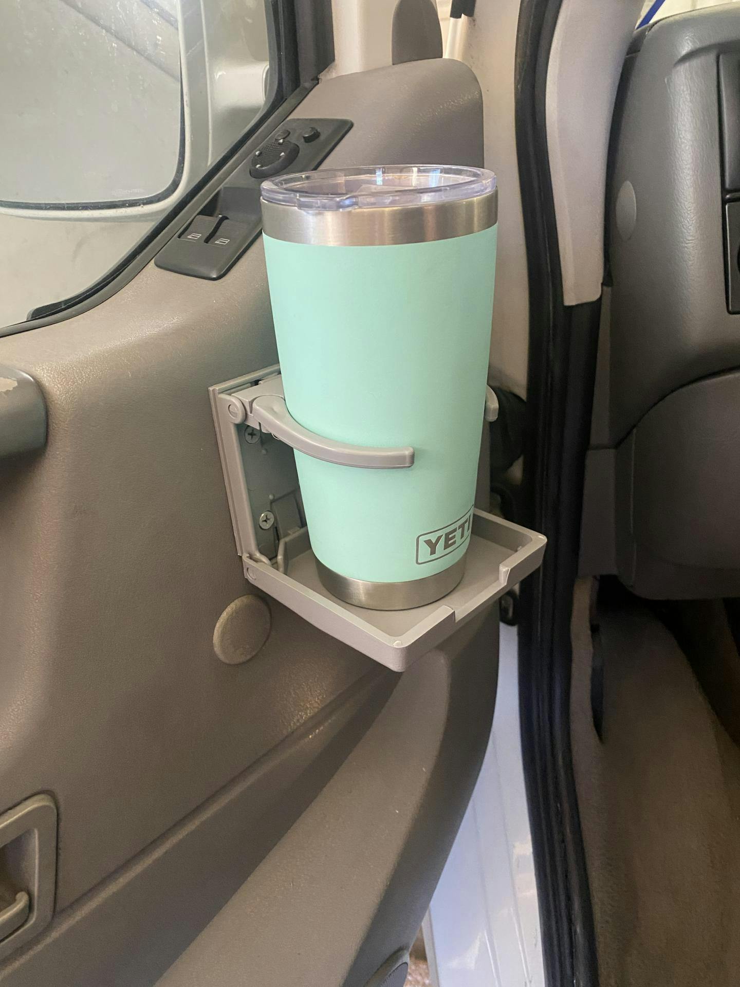 OE style folding cup holder with adjustable "pivoting" arms. Mounts on vertical surface.