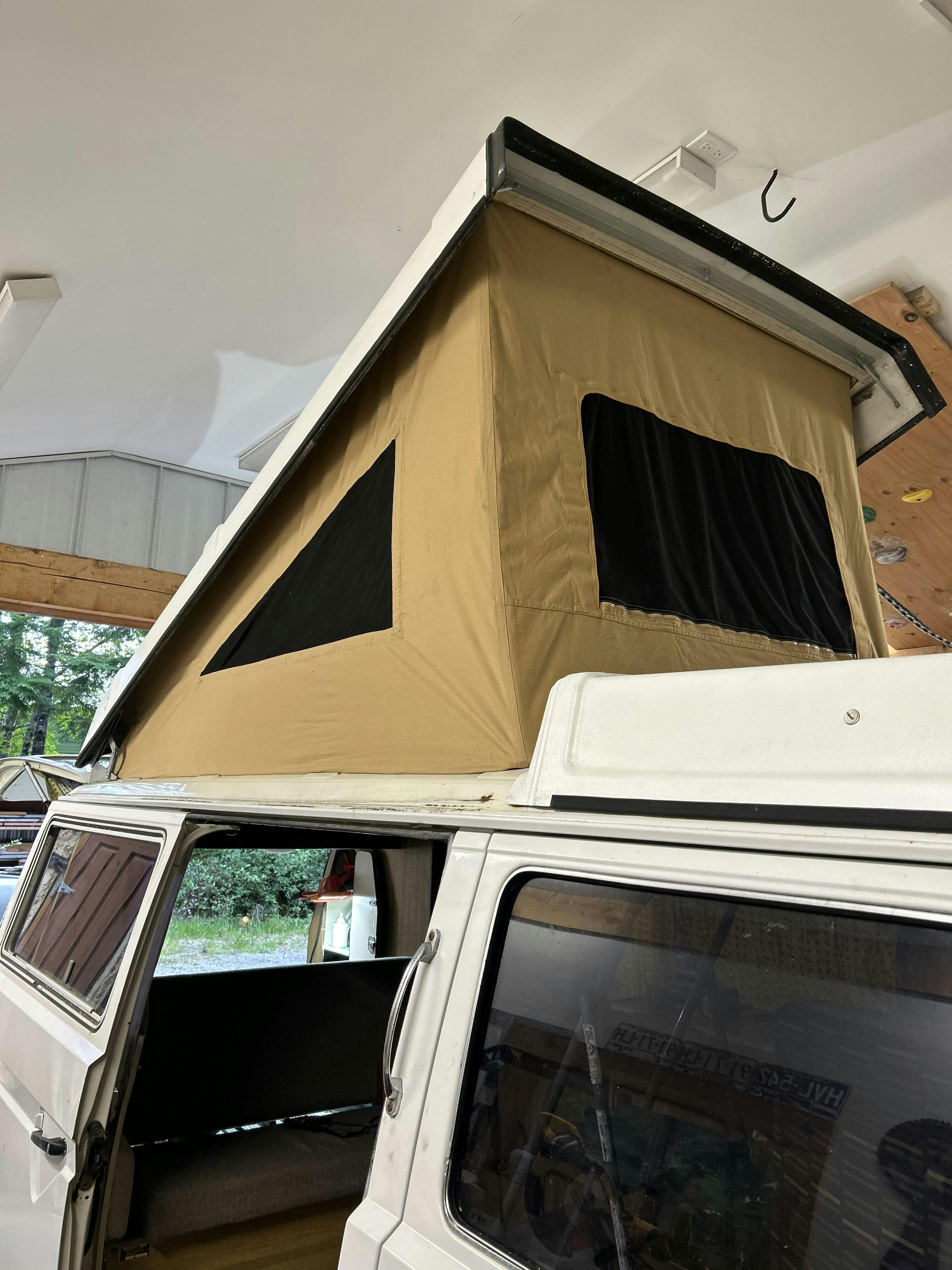 Early Vanagon camper tent available in tan cotton fabric only.
