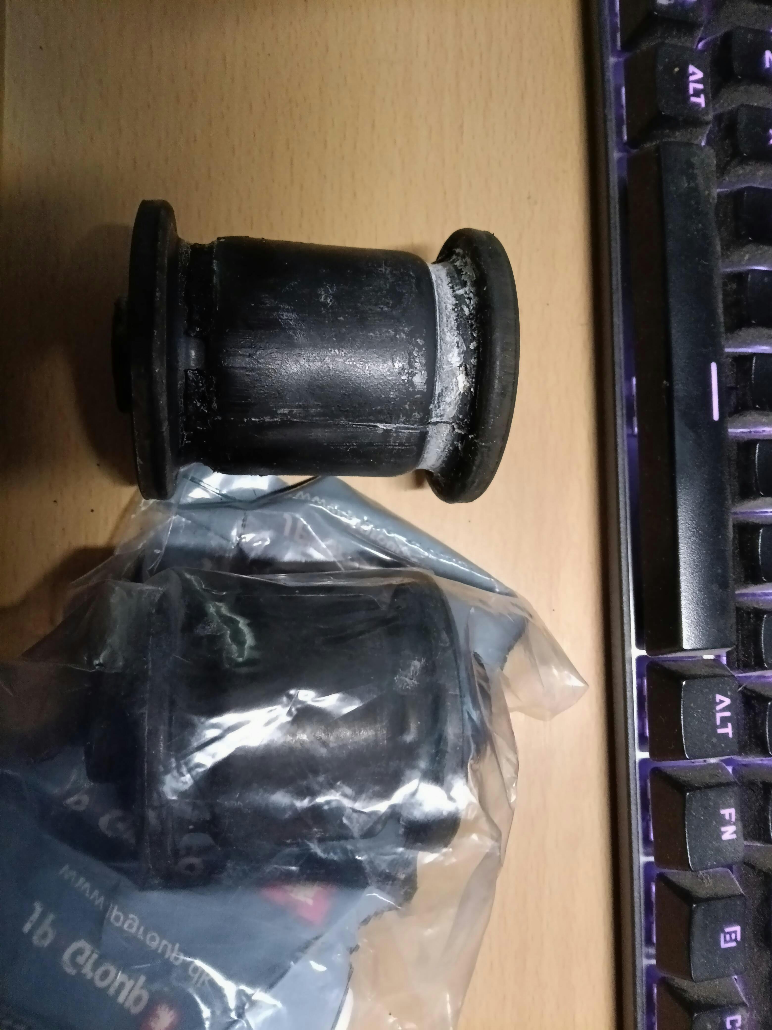 Fit notes: Do not be alarmed when you notice that the new bushings are not identical in size to the old bushings you removed. The bushings are designed to stretch, which means they will expand to fit the tube as they are pressed in. This is a normal part of their function. It is common for new bushings to have different dimensions compared to the old ones. The narrower width and larger diameter are intentional to ensure a secure fit.