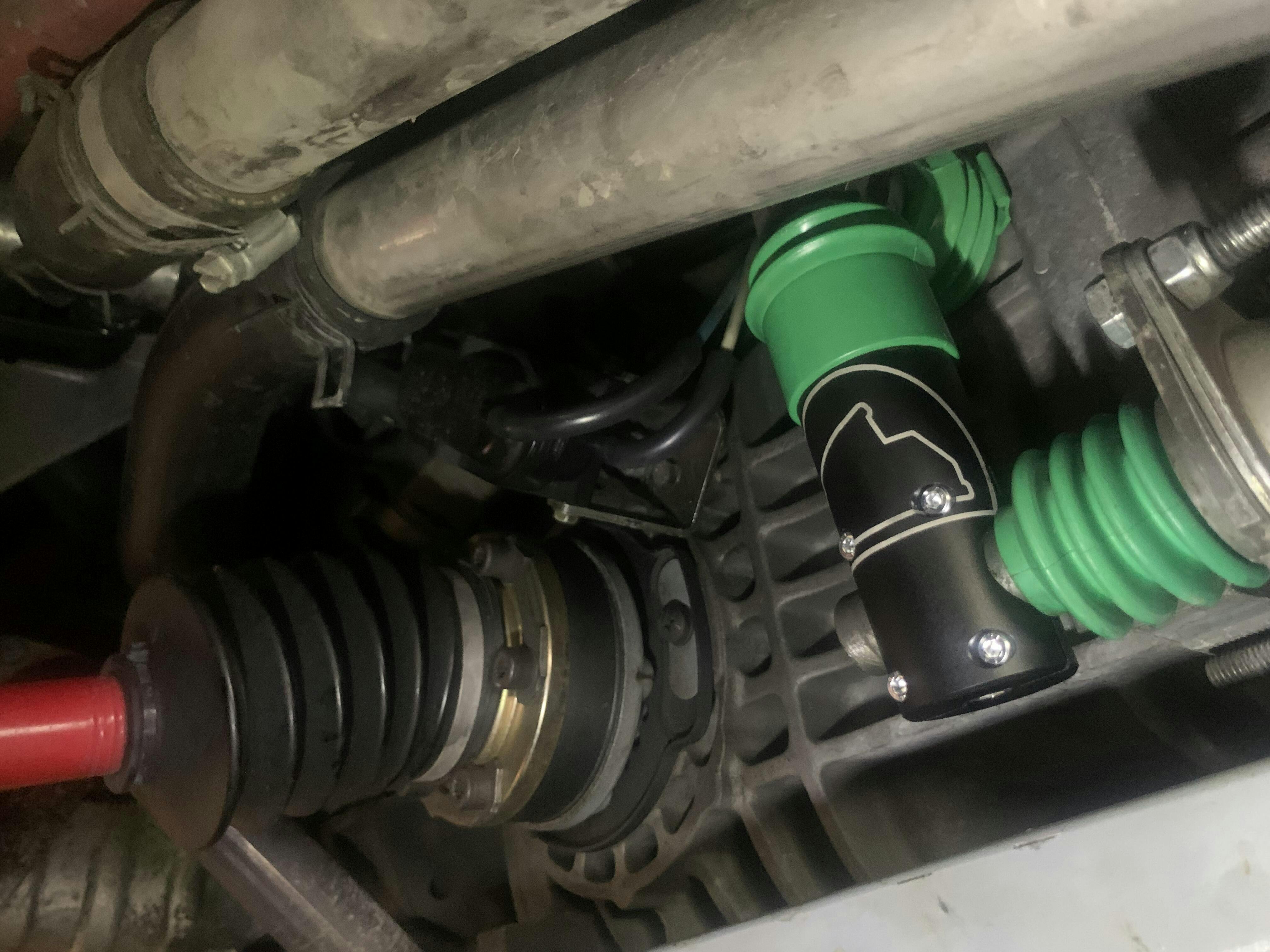 Standard Option: Billet aluminum elbow, black anodized and laser etched with our logo. New roll pin included.