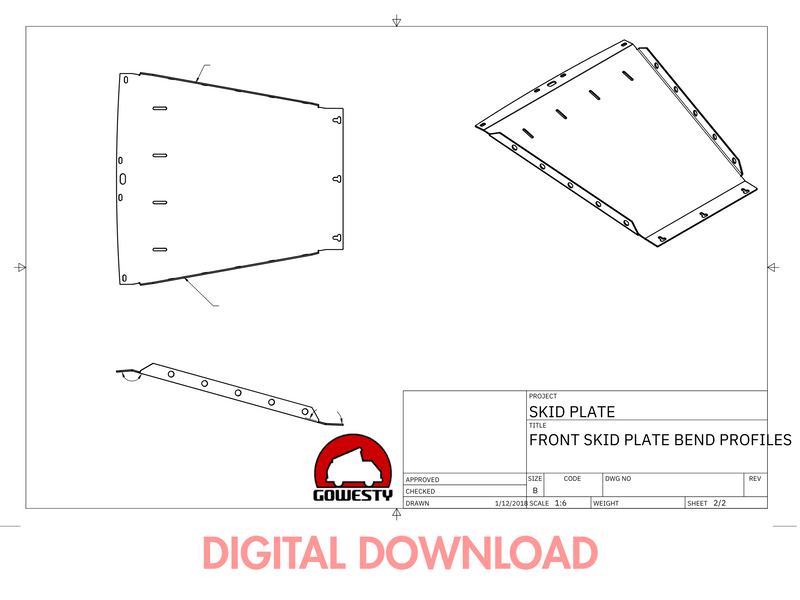 Build your own bolt-on front skid plate for all 2WD & 4WD Vanagon models that can withstand some serious abuse with this digital download kit. We have pounded these on many off-road adventures and are very pleased with the strength and durability. The long sides of the plate are formed at a 90° angle for added rigidity, and are drilled for bungee cords or ratchet strap hooks to tie down gear you might wish to store in this location.